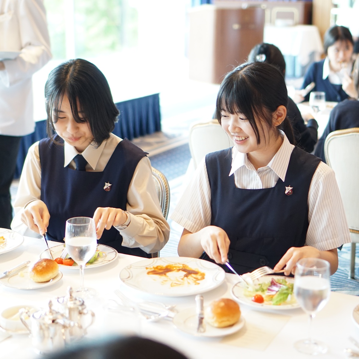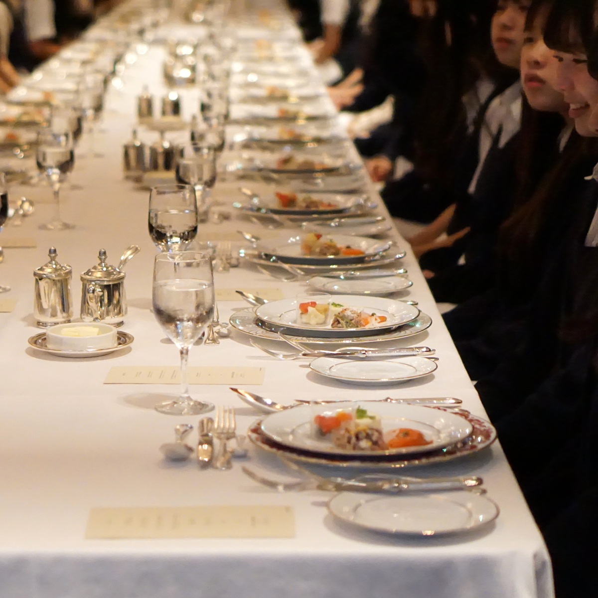 コース料理の流れやテーブルマナーの歴史などを教えてていただき、お料理を美味しくいただきました。