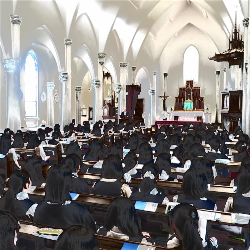 午後はカトリック山手教会を訪れ、谷脇神父からお話を伺いました。