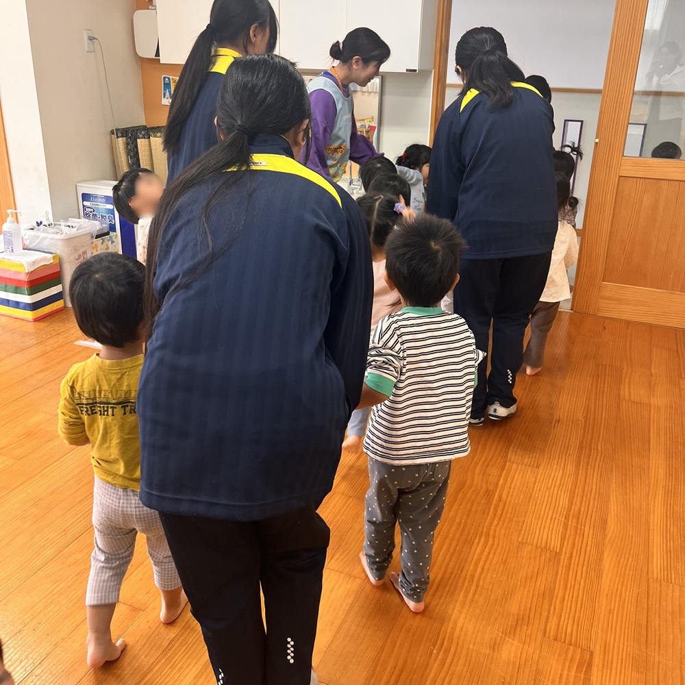 保育園では年齢ごとのクラスに分かれて一緒に遊び、誕生日会にも参加しました。