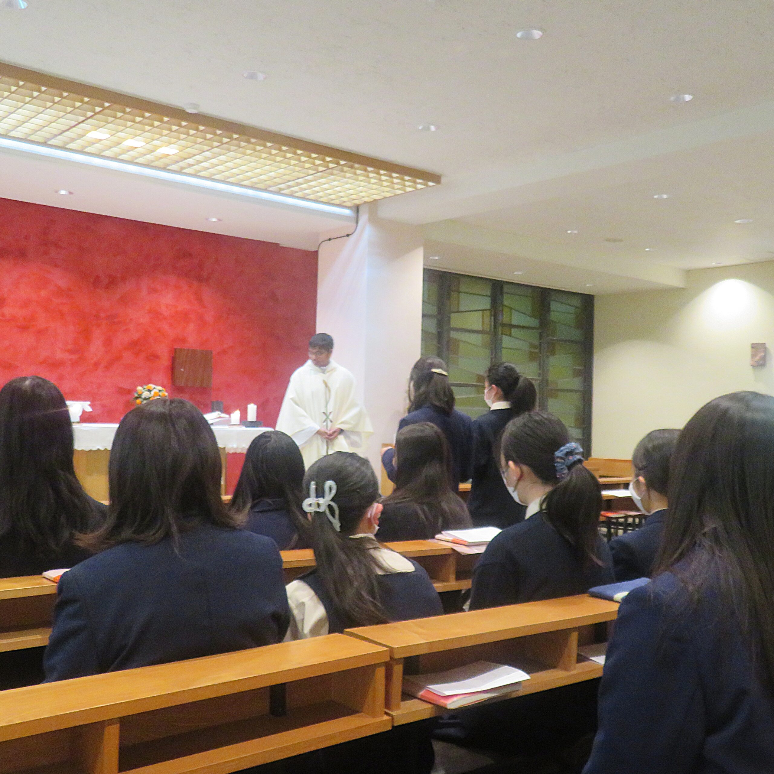 ⛪死者の日のミサ🕊 2025.11.19 清泉ライフ 11月は、カトリックの暦で「死者の月」とされています。 本日、雪ノ下教会のドミニク神父による司式のもと、「死者のためのミサ」が行われました。 参加した生徒も教職員も、この一年で亡くなられた方々に思いを馳せ、永遠の安息をお祈りしました。 IMG_3375 1DSC_1327DSC_1324DSC_1329 前の記事へ 次の記事へ