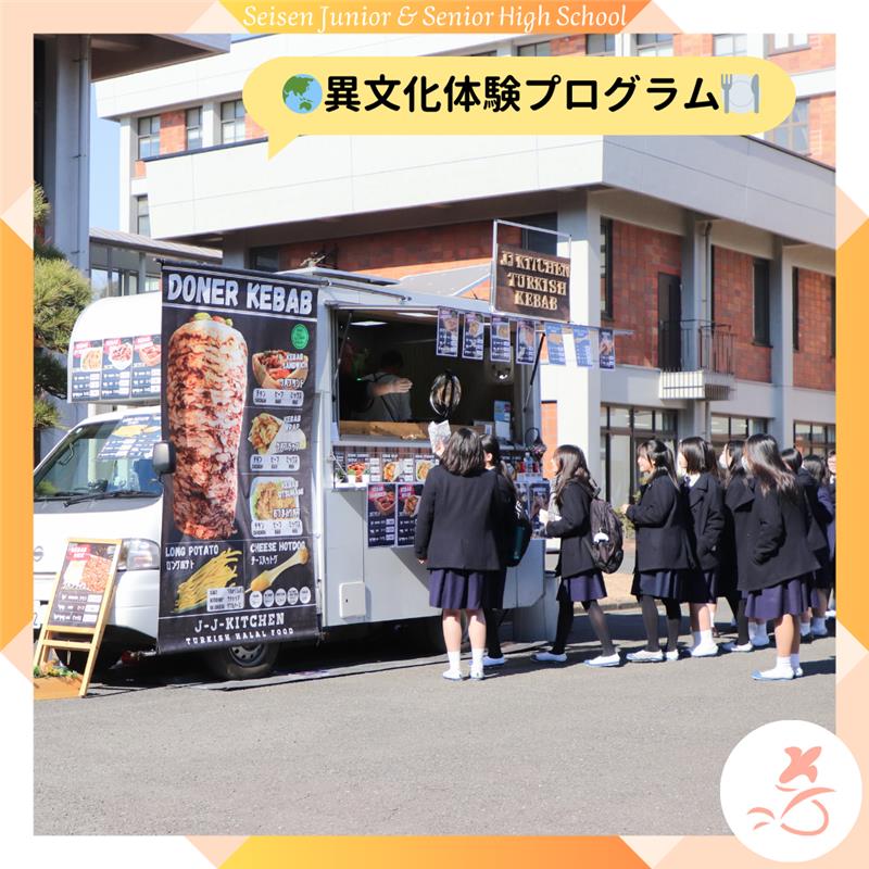 🌏異文化体験プログラム🍽️ 2026.01.27 清泉ライフ 先週土曜、「食」を通じた異文化体験を目的として、生徒会がケバブのキッチンカーを招致! 午前のプログラムを終えた高校生や、午後の部活や英検で登校した中学生で、キッチンカーは大行列! スパイシーでおいしい異国の味に笑顔が溢れました。 Seisen Junior & Senior High School 7IMG_9996IMG_9993 1IMG_9977 1 前の記事へ 次の記事へ