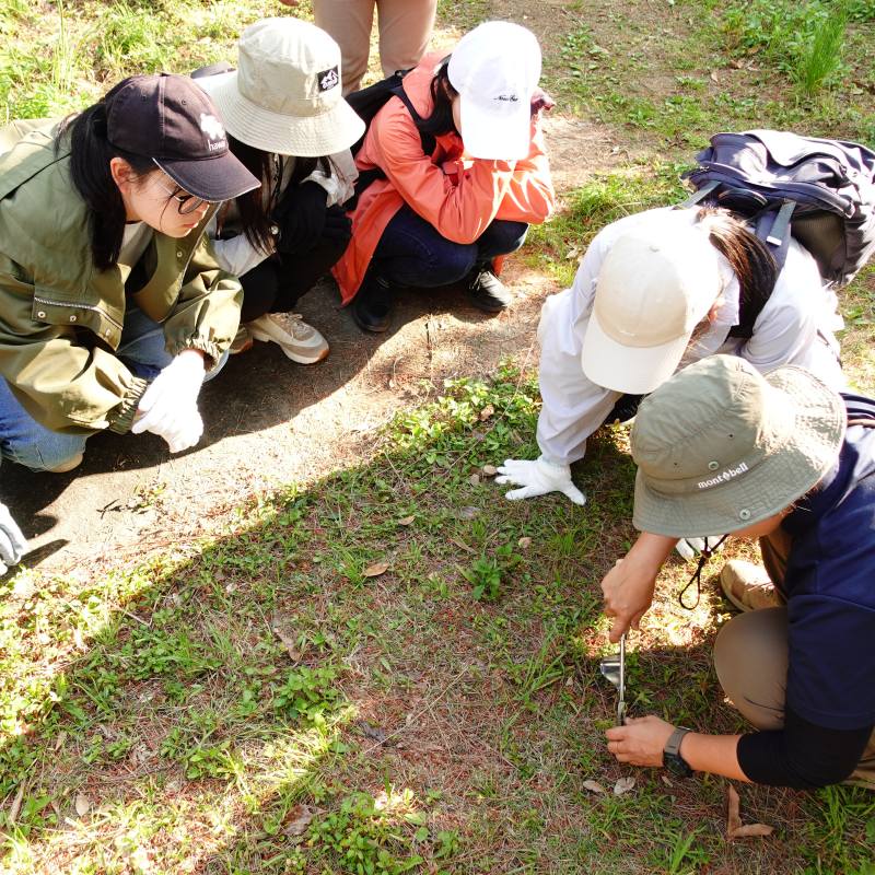 自然観察コースでは、ガイドさんの解説のもとでやんばるの豊かな自然に全身で触れ、また、外来植物の除去作業を体験しました。生徒たちは、貴重な生態系を守るために真剣に取り組んでいました。