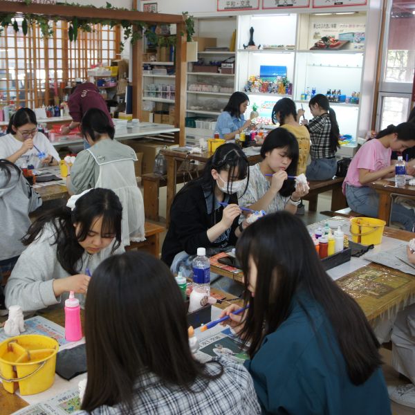 文化体験コースでは、シーサーやジンベエザメの色付け、絞り染め、とんぼ玉作り、三線など、沖縄の文化を楽しく体験しました。