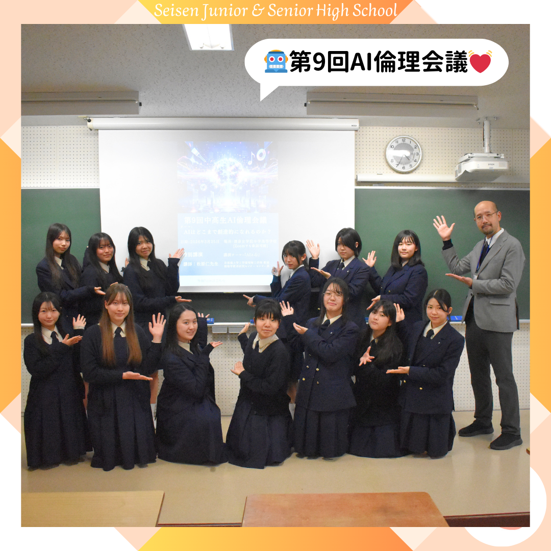 🤖AI倫理会議💓 2026.03.25 清泉ライフ 本日、第9回AI倫理会議を開催し、4校の中高生30名が集まりました。 特別講演では京都橘大学工学部教授の松原仁先生が「AIは心を持てるのか」というテーマでお話しくださいました。 分科会では、人間とAIの創造性の違いや”心”の定義について話し合っていました。 検討した倫理憲章がどのように報告書にまとめられるか、今後が楽しみです。 DSC_1777DSC_1744DSC_1785新版 Seisen Junior & Senior High School (12) 1 前の記事へ 次の記事へ