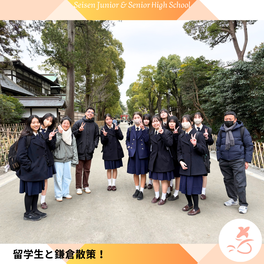 UN高1国際交流プログラムJP 2026.03.31 清泉ライフ 国際交流プログラムとして、高1は日本に留学している大学生、大学院生と一緒に交流しました。 1グループ5~7名に1名の留学生がつき、自己紹介や出身国について話をしました。 次の日は鎌倉を散策!日本の文化やその良さを伝えて楽しい一日を過ごしました! 国際交流1国際交流5国際交流3国際交流6国際交流4国際交流2 前の記事へ
